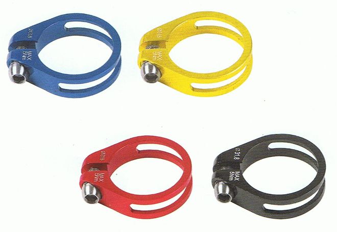 Äußerst leichte Sattelstützklemme aus einem Stück Aluminium 7075 T6 CNC-gefräßt mit Klemmschraube aus Titan TiAl4V6.