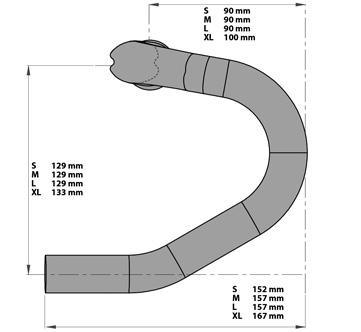 Vorbiegung: 90 mm (S, M, L), 100 mm (XL)