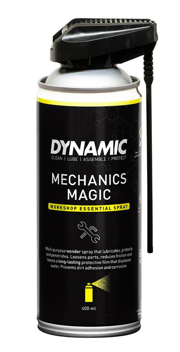 Mechanic Magic ist ein Wunderspray mit vielen Einsatzgebieten, das schmiert, schützt und einzieht. Es lockert Teile, verringert die Reibung und hinterlässt einen lang anhaltenden Schutzfilm, der Wasser verdrängt. Mechanics Magic verhindert das Anhaften von Schmutz und Korrosion. Dieses Spray ist das ultimative Multispray, das in zahllosen Situationen, in jeder Werkstatt und rund um jedes Fahrrad zum Einsatz kommt.