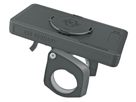 Das COMPIT+-System besteht aus einer Smartphone Halterung und Powerbank mit integriertem NFC-Chip. Jedes Mobilgerät, das mit kabelloser Ladefunktion ausgestattet ist, kann mit der +COM/UNIT verbunden und unterwegs geladen werden. Mit einem Dreh lässt sich das Smartphone dank der Oversize-Bajonettaufnahme horizontal oder vertikal anbringen. Die Handyhalterung lässt sich ganz unkompliziert an verschiedensten Lenker-Geometrien montieren. Neben Klemmarmen bietet das Komplettset mit beigelegten Spacern auch die Möglichkeit, den Handyhalter an E-Bikes mit Mittel-Displays zu befestigen, sodass Smartphone und Bordcomputer eine geschlossene Einheit am Lenker bilden. Hinweis: Ein spezielles Smartphone-Cover/Tasche wird benötigt!
