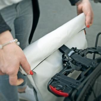 Mit Sack und Pack sicher unterwegs! Die schicke Gepäckträgertasche INFINITY URBAN SIDEBAG bietet mit ca. 20 Litern viel Platz für Equipment, Laptop oder Einkäufe. Sie wird mit zwei stabilen Haken an der Gepäckträgerstrebe eingehängt und lässt sich zusätzlich mit dem unteren Drehhaken fixieren. Dieser verhindert gleichzeitig ein seitliches Pendeln beim Fahren. Durch den großen Verstellbereich der Haken kann die Fahrradtasche nicht nur am INFINITY UNIVERSAL, sondern auch an nahezu jedem Gepäckträger befestigt werden.