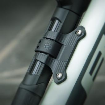 Die zuschaltbare Teleskop-Funktion sorgt für mehr Volumen pro Hub und erhöht gleichzeitig den maximal erreichbaren Druck. Der MV EASY-Kopf für alle Ventilarten verspricht ein effizientes Pumpen. Der in das Design integrierte Klemmhebel stellt eine zuverlässige Ventilverbindung sicher. Dank des Pumpenhalters kann die Fahrradpumpe platzsparend am Rahmen befestigt werden. Das mit Kunststoff überzogene Alu-Kompressionsrohr macht die Pumpe stabil und langlebig.