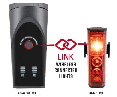 Mit dem Beleuchtungsset AURA 100 / BLAZE LINK lässt sich Fahrradlicht auf ganz neue Weise steuern, gestalten und erleben. Durch die innovative Linkfunktion können die Leuchten blitzschnell miteinander gekoppelt werden. Einmal verbunden, werden sie bequem von der Frontleuchte aus bedient. Die für den Straßenverkehr zugelassene AURA 100 LINK leuchtet dir mit 100 Lux Leuchtstärke und 110 Metern Leuchtweite auch den dunkelsten Weg aus und die BLAZE LINK sorgt mit ihrer Bremslichtfunktion für maximale Sichtbarkeit. Das Gesamtkonzept verdiente sich den Eurobike Award 2021.