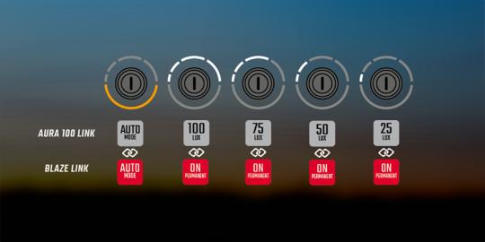 Die AURA 100 LINK geht noch einen Schritt weiter. Im Beleuchtungsmodus „Auto“ passt der Helligkeitssensor die Beleuchtungsstärke automatisch an das Umgebungslicht an. So wird eine möglichst lange Leuchtdauer bei ausreichender Lichtleistung von 25 bis 100 Lux gewährleistet.