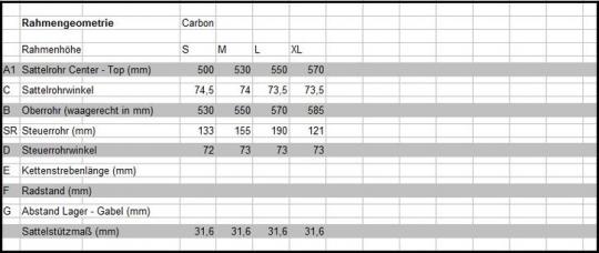 Rahmen: Sörgel Carbon (Alu-Rahmen aus 2fach konifizierten 7005 T6 - Rohren mit Karbon RS Sattelstreben.)