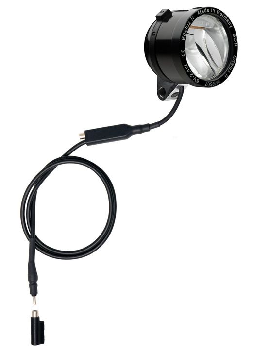 Mit einer brandaktuellen Leuchtdiode und dem vom Lichttechnik-Spezialisten Busch und Müller neu entwickelten Reflektor stellt der Edelux II seinen fünf Jahre älteren Bruder buchstäblich in den Schatten: Das Lichtfeld ist doppelt so breit, noch besser fokusiert in der Ferne und hat ein gleichmäßig ausgeleuchtetes Nahfeld, das dicht am Vorderrad beginnt.