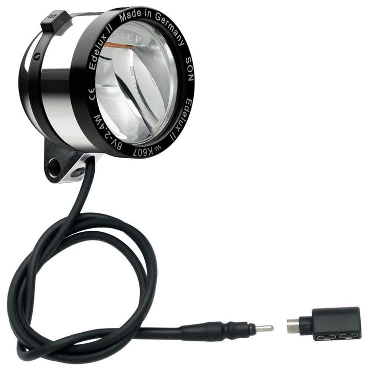 Mit einer brandaktuellen Leuchtdiode und dem vom Lichttechnik-Spezialisten Busch und Müller neu entwickelten Reflektor stellt der Edelux II seinen fünf Jahre älteren Bruder buchstäblich in den Schatten: Das Lichtfeld ist doppelt so breit, noch besser fokusiert in der Ferne und hat ein gleichmäßig ausgeleuchtetes Nahfeld, das dicht am Vorderrad beginnt.