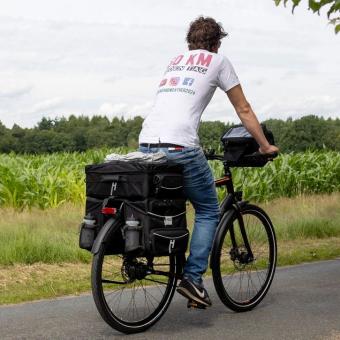 Touring Max. Die Einzeltasche mit Kombinationsmöglichkeit. Unsere formstabile Einzeltasche »Touring Max« ist mit zwei Vortaschen ausgestattet. Eine größere im unteren Bereich z.B. für deine Geldbörse und eine kleinere am Klapptenteil. Hinter dieser findest du die Schloss-Aufnahme, um bei Bedarf das Topcase zu fixieren. Das Hauptfach öffnest und verschließt du mit einem reflektierenden Metallschloss, das kinderleicht mit einer Hand zu bedienen ist. Mit der Kompaktschiene befestigst du »Touring Max« am Fahrrad-Gepäckträger und kannst ihn auf Knopfdruck ebenso schnell wieder lösen. Zudem befindet sich eine Schiene auf der Rückseite der Einzeltasche. Damit fixierst du sie zusätzlich am Bike und verhinderst so ein Pendeln während der Fahrt. Alle reflektierenden Elemente, wie das Schloss, die Logos und die Streifen, sorgen für deine bessere Sichtbarkeit und somit auch Sicherheit bei schlechteren Sichtverhältnissen oder bei Dunkelheit. »Touring Max« ist übrigens auch als Doppeltasche (siehe Artikel TKS400 00) oder Standard-Version ohne Topcase-Aufnahme (siehe Artikel EKS900 00 »Max«) erhältlich.