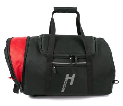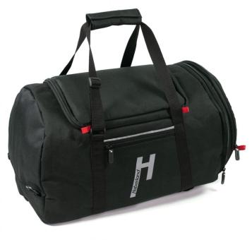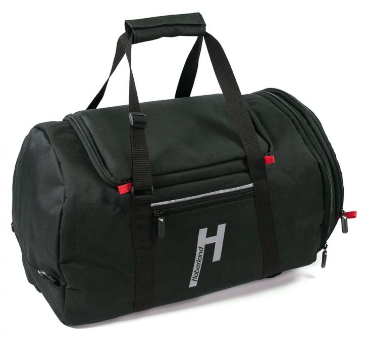 Die multitransportable und funktionelle Sporttasche. Der vielseitige Tragekomfort beim »TranSPORTer« lässt jede herkömmliche Sporttasche vor Neid erblassen: mit den beiden Tragegriffen für die Hand hast du alles im Griff. Dabei kannst du die Griffe per Klett fixieren. Mit einem Träger hängst du diese Tasche lässig über die Schulter oder verwendest beide Teile, um den »TranSPORTer« als Rucksack zu verwenden. Die gepolsterte Halterungsabdeckung schützt und versteckt die Befestigung für den Gepäckträger. Die Rucksackträger lassen sich komplett entnehmen, oder in den dafür vorgesehenen Fächern verstauen, sodass du deinen »TranSPORTer« ruckzuck am Bike befestigen kannst. Dein Rücken wird somit während der Fahrt mit dem Rad nicht belastet. Die Haken der Kompaktschiene kannst du per Knopfdruck individuell für deinen Fahrradgepäckträger passend einstellen. Die große Reißverschlussöffnung bietet dir einen kompletten Zugriff ins Hauptfach. Dort lässt sich eine Unterteilung per Klett vornehmen, sodass du deine Sachen geordnet transportieren kannst. Zudem gibt es im Inneren ein Netzfach mit Reißverschluss. Hier kannst du z.B. dein Duschzeug oder Kleinteile verstauen. Das große Reißverschlussfach an der Seite ist erweiterbar und eignet sich so perfekt für Turnschuhe oder ähnliches. Zwei kleine Fächer zwischen den Griffen kannst du auch bei geschlossenem Hauptfach durch eigene Reißverschlüsse erreichen. Die Reflex-Logos und -streifen bieten dir Sichtbarkeit und somit Sicherheit im Dunkeln. Ein besonderer Clou sind die beiden Steckverschluss-Aufnahmen an den Seiten des Taschenbodens, denn die passen zur Doppeltasche (DSP100) und wandeln deinen »TranSPORTer« zum Topcase für die große Tour.