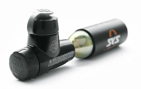 Der neue Airbuster ist die extrem leichte Lösung für jeden Wettkampf. Die CO2-Pumpe besteht aus einem Aluminium-Gehäuse mit integriertem Druckdosierventil, Kälteschutz und Staubschutzkappe. Sie eignet sich sowohl für 16 g als auch für 24 g Kartuschen mit Gewinde. Über einen Drehdosierer kann der Druck leicht reguliert werden. Zum Lieferumfang gehören eine 16 g-Ersatzkartusche und der bewährte SKS-2-Punkt-Pumpenhalter.