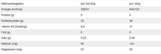 ° 23 g Kohlenhydrate pro Gel