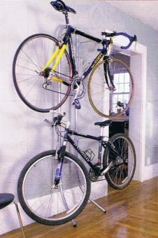 Neue, raffinierte Wandhalterung für zwei Fahrräder. Der Michelangelo Gravity Stand wird einfach an die Wand gelehnt und hält stoßsicher durch den eigenen Schwerpunkt. Keine Schraubbefestigung oder sonstige Wandmontage erforderlich. Stabile Rohrkonstruktion mit robuster Pulverbeschichtung mit um-mantelter Rahmenhalterung für alle gängigen Rahmentypen.